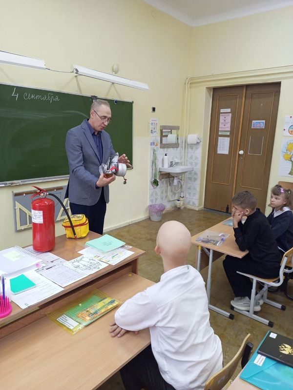 В первый день, после праздничной линейки и классного часа "Разговоры о важном" классные руководители провели уроки и инструктажи по правилам поведения в повседневной жизни и действиям в различного рода ЧС. 4 сентября прошла объектовая тренировка - эвакуация при возникновении пожара. Учащиеся и работники школы справились с задачей на отлично. После эвакуации перед детьми выступила инспектор МЧС России Е. И. Кравчук.