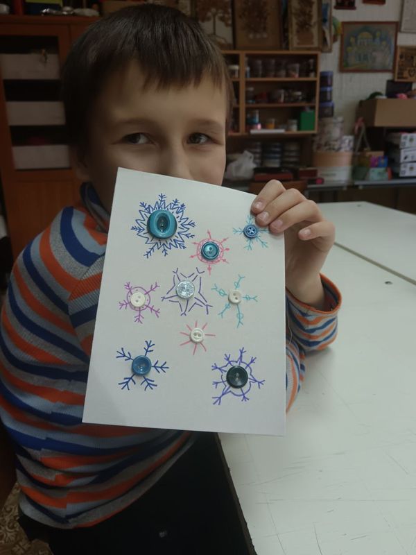 Основной задачей было создание красиво оформленной снежинки, для чего ученики использовали пуговки и фломастеры. Каждый школьник смог воплотить свою уникальную идею, украшая снежинку яркими узорами и оригинальными деталями.